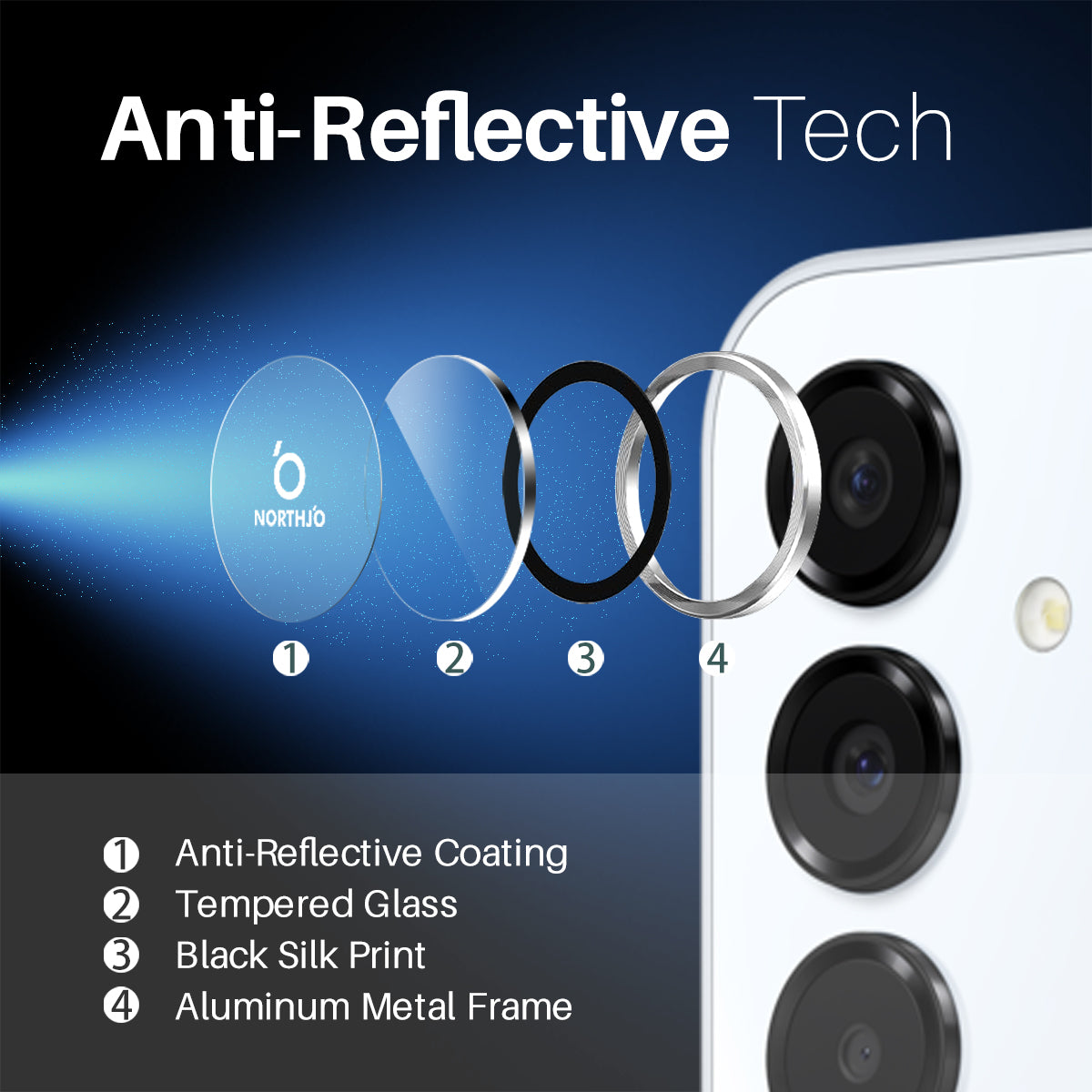 NORTHJO 1 Set For Samsung Galaxy A16 5G / A16 4G Camera Lens Flim+Tempered Glass+Metal Ring Lens Protector - Silver