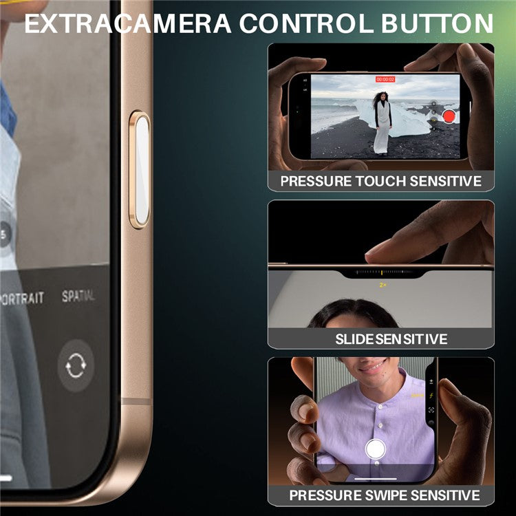 NORTHJO For iPhone 16 / 16 Plus / 16 Pro / 16 Pro Max Camera Control Button Cover Protector Metal Frame with Capacitor Chip - White+Gold