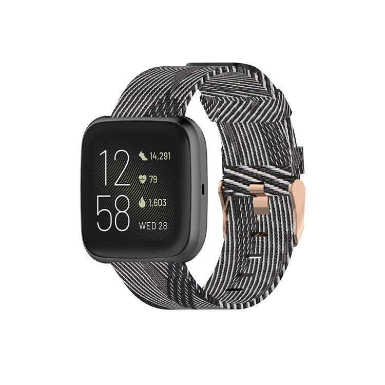 Nylon Braided Watch Band for Fitbit Versa 2/Versa Lite/Versa Blaze, Adjustable Wrist Strap Replacement - Black Stripe