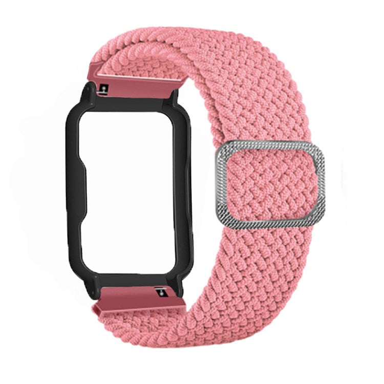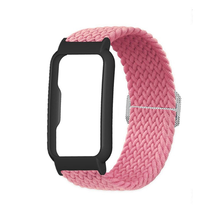 Nylon Knitted Elastic Watch Band for Oppo Watch Free, Replacement Wrist Strap with Watch Case - Pink/Black