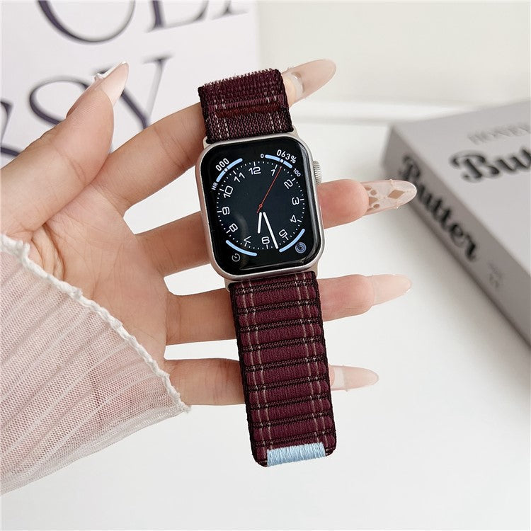Nylon Strap for Apple Watch Series 10 Ultra 9 8 7 SE 6 5 4 3 2 1 46mm 49mm 45mm 44mm 42mm Wave Texture Watch Band - Wine Red