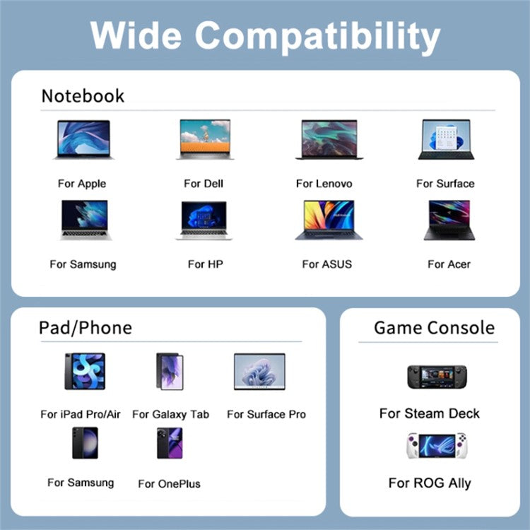 - Suitable for tablets, smartphones, laptops and other devices with Type-C interface