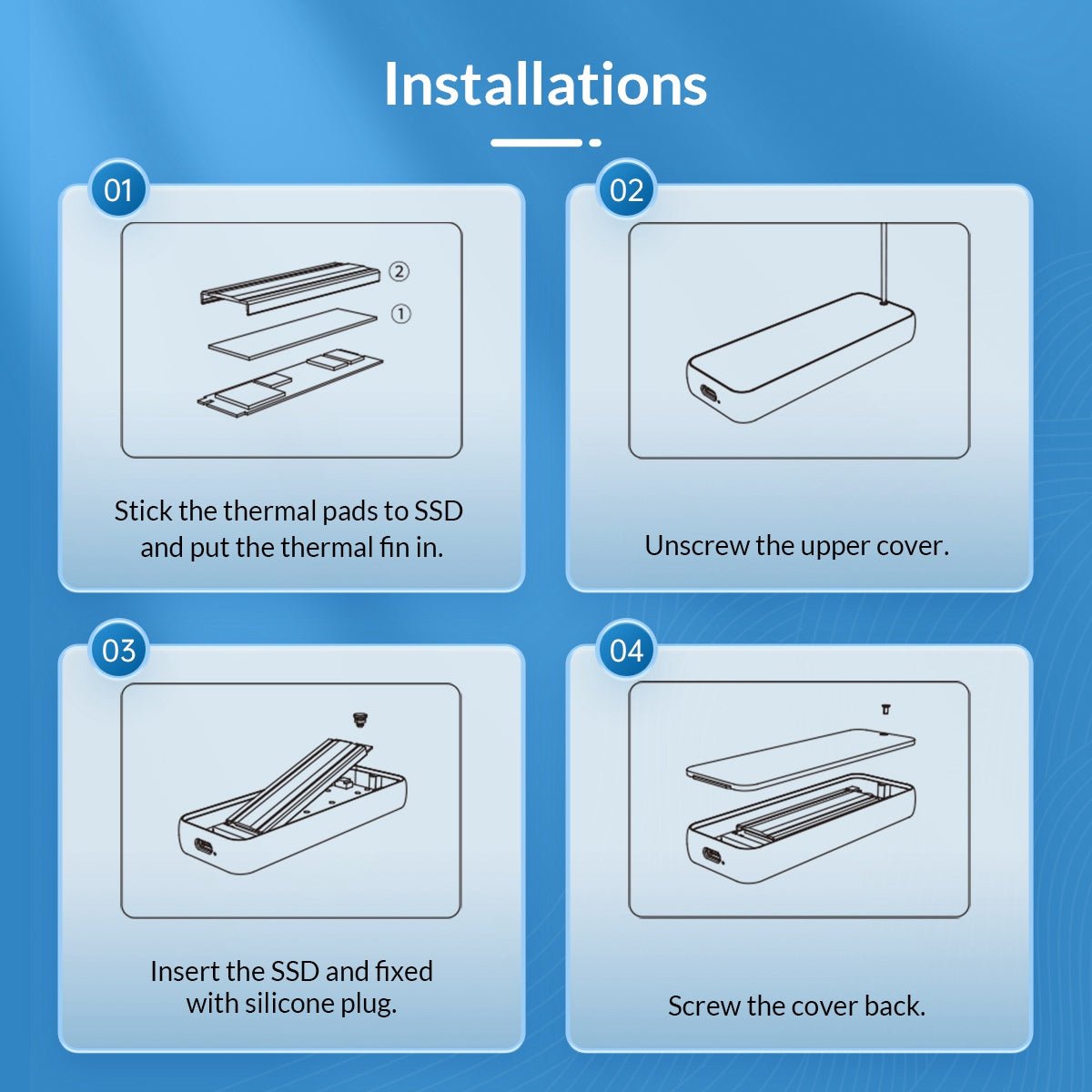 Uniqkart M223C3-G4 20Gbps M.2 NVMe SSD Case External Hard Drive Enclosure Case, USB3.2 Gen2*2 Type-C Output - Gold