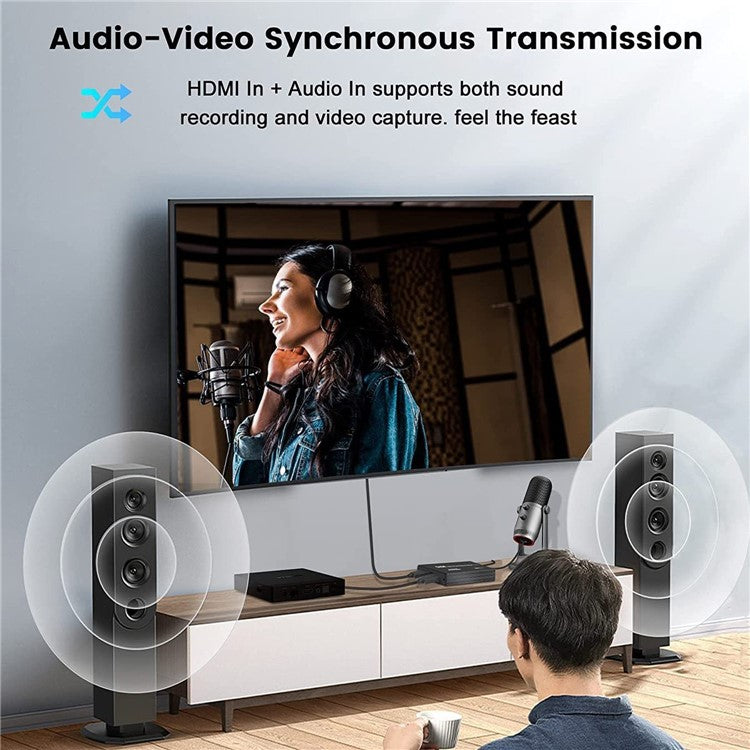 - With two 3.5mm microphone inputs and audio outputs, this audio-video capture card can simultaneously record HDMI video and audio, sending both signals to the computer for preview and storage. The 3.5mm microphone input and headphone output allow simultaneous audio recording and output, providing more options