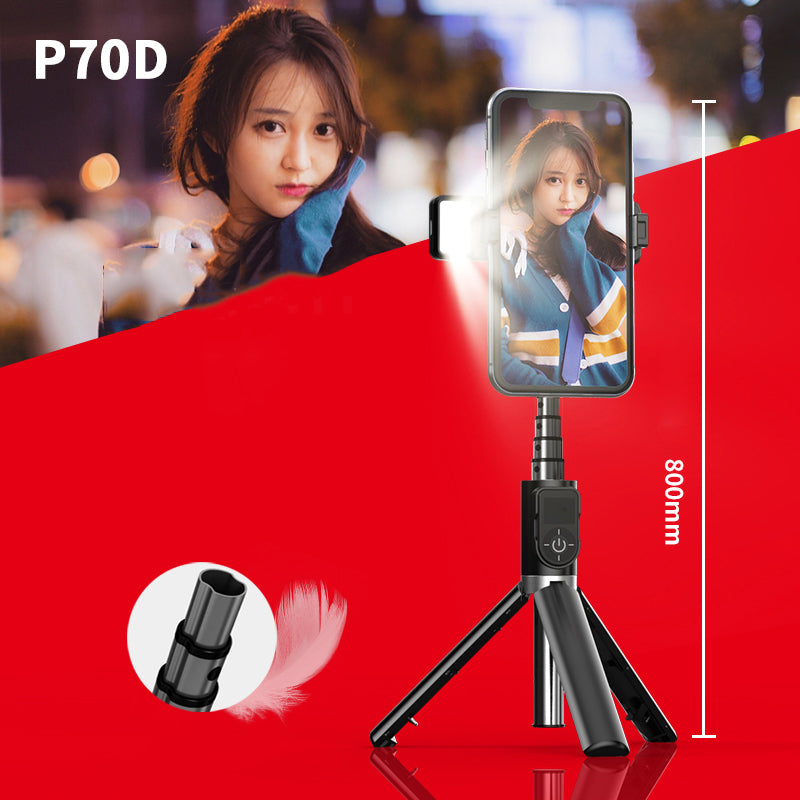 1 x P70D Aluminum Alloy Retractable Bluetooth Selfie Stick LED Fill Light with Tripod