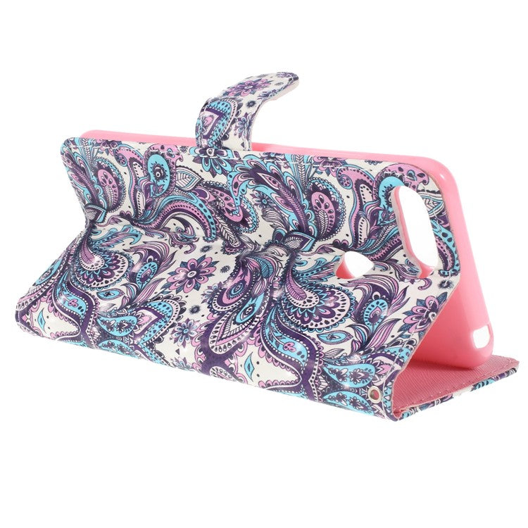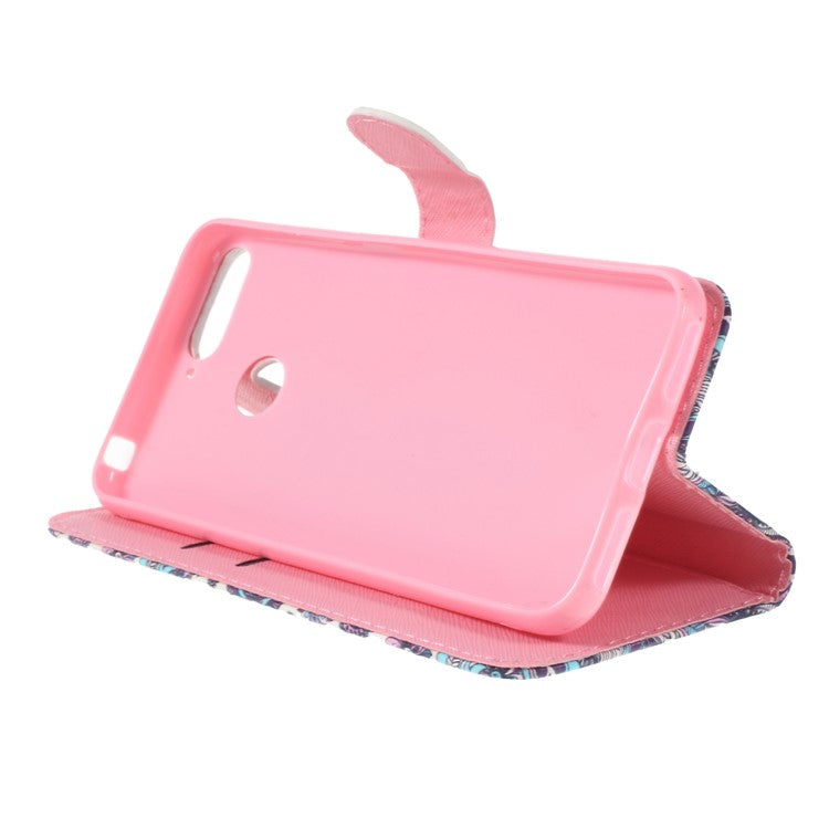 Pattern Printing Leather Wallet Case Shell Cover for Huawei Y6 (2018)/Honor 7A (without Fingerprint Sensor) - Colorized Flower
