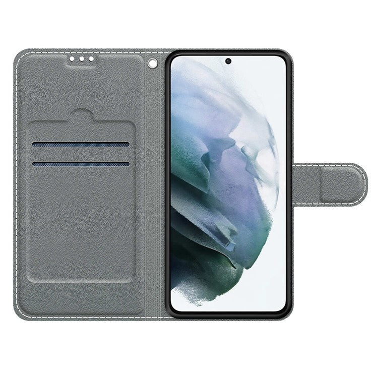 Pattern Printing PU Leather Stand Card Holder Phone Case with Wrist Strap for Samsung Galaxy S22 Ultra 5G - C16 Waterdrop and Flowers