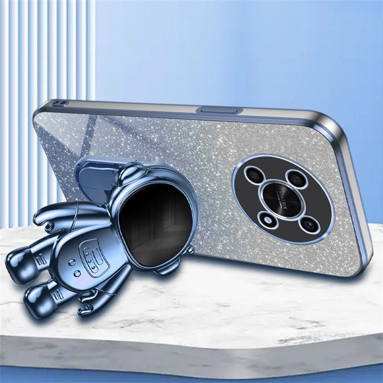 PC+TPU Case for Honor X30 5G , Glitter Powder Astronaut Kickstand Phone Cover - Blue