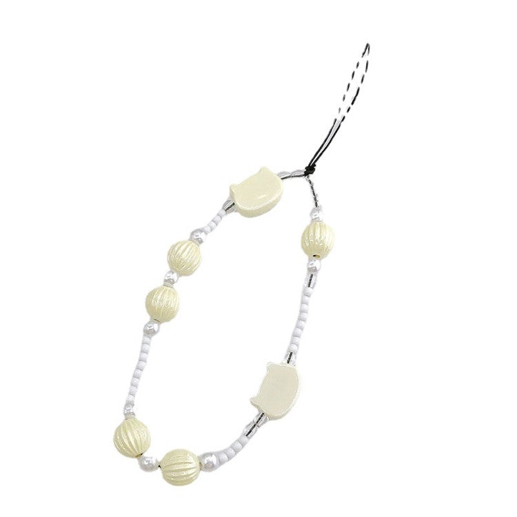 Pearlescent Cat Head Pumpkin Beads Design Phone Anti-drop Hand Chain Cellphone Case Lanyard Pendant - Beige