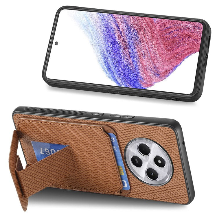 Phone Case For Xiaomi Redmi 14C 4G / 14R 5G / Poco C75 4G Carbon Fiber Texture Leather Coated TPU Back Cover with Card Holder - Brown