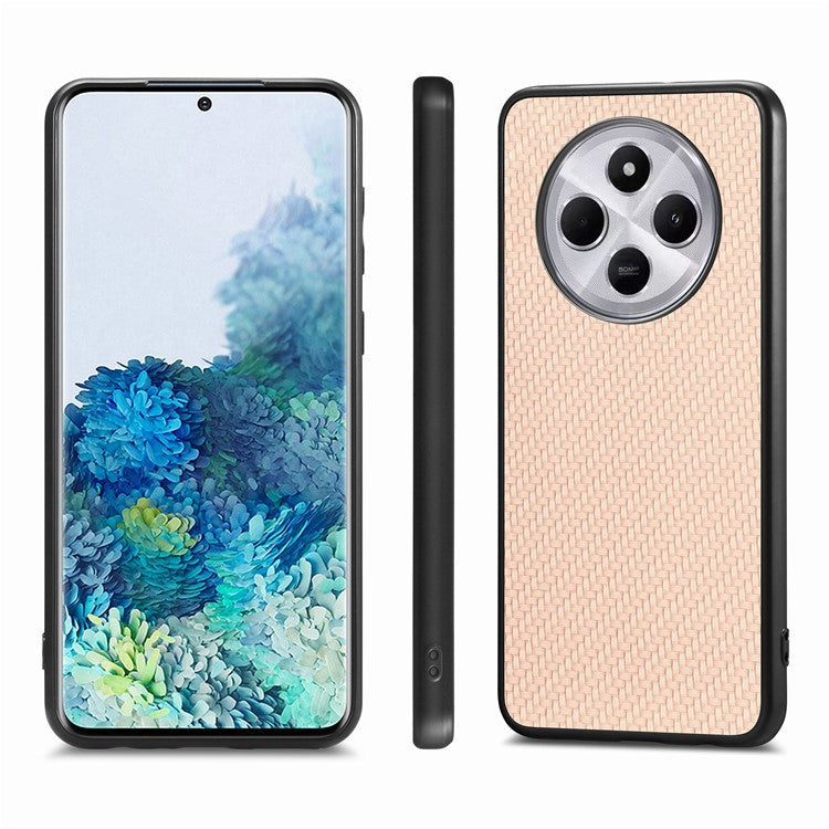 Phone Case For Xiaomi Redmi 14C 4G / 14R 5G / Poco C75 4G Carbon Fiber Texture PU+PC+TPU Back Cover - Apricot