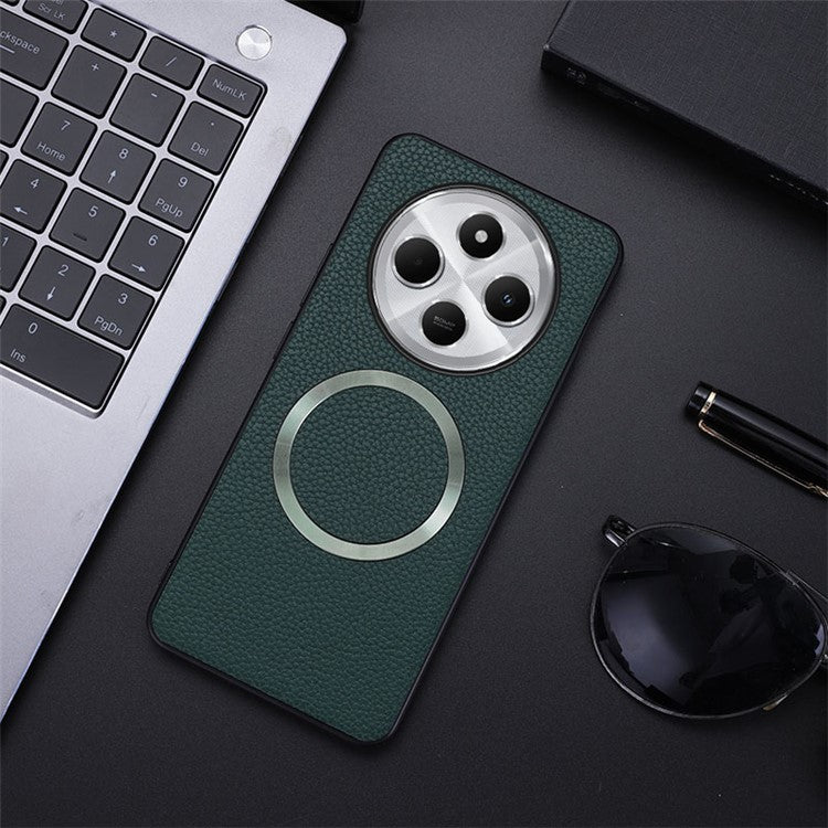 Phone Case For Xiaomi Redmi 14C 4G / 14R 5G / Poco C75 4G Compatible with MagSafe PU Leather+TPU Back Cover - Green