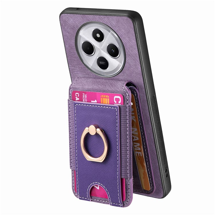 Phone Case For Xiaomi Redmi 14C 4G / 14R 5G / Poco C75 4G Kickstand Leather Back Cover with Detachable Card Holder - Purple
