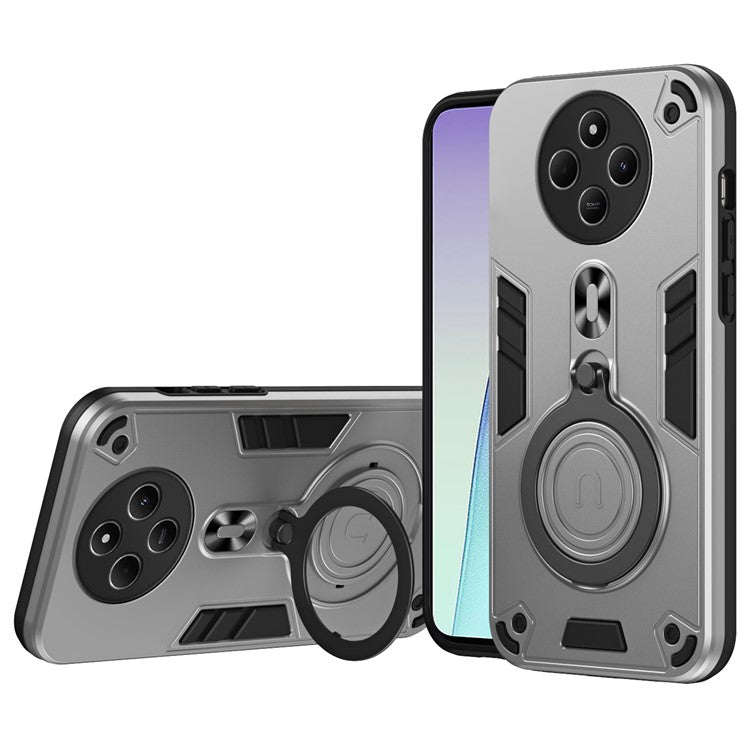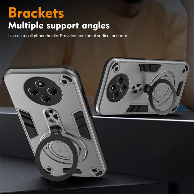 Phone Case For Xiaomi Redmi 14C 4G / 14R 5G / Poco C75 4G PC+TPU Drop Protection Back Cover with Rotatable Kickstand - Silver