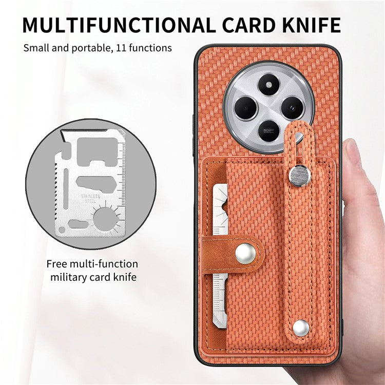 Phone Case For Xiaomi Redmi 14C 4G / 14R 5G / Poco C75 4G Wristband Anti-Drop Leather Back Cover Card Holder - Brown
