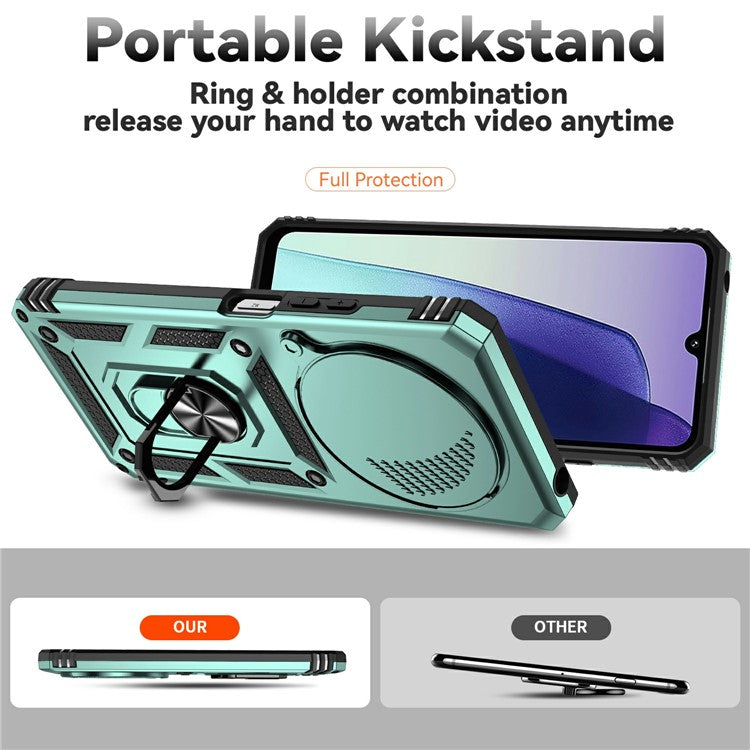 Phone Case For Xiaomi Redmi 14R 5G / 14C 4G / Poco C75 4G PC + TPU Phone Cover with Lens Protection Kickstand - Blackish Green