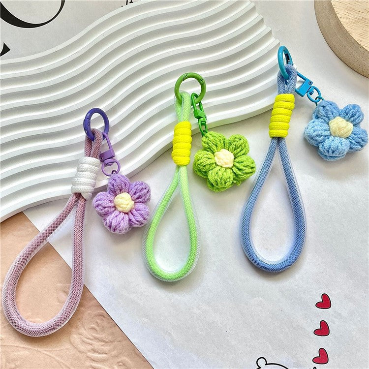 Phone Charms 15cm Hand Woven Flower Keychain Wristlet Strap Polyester Anti-Loss String - Green