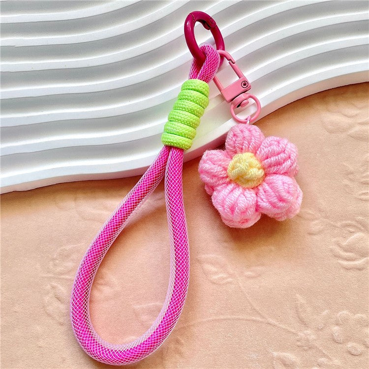 Phone Charms 15cm Hand Woven Flower Keychain Wristlet Strap Polyester Anti-Loss String - Pink