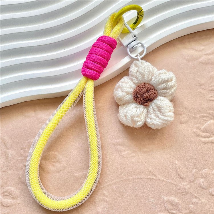Phone Charms 15cm Hand Woven Flower Keychain Wristlet Strap Polyester Anti-Loss String - Yellow