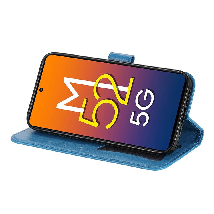 Phone Cover Flip Mobile Phone Case Imprinted Flower Pattern TPU+PU Leather Stand Wallet with Lanyard for Samsung Galaxy M52 5G - Blue