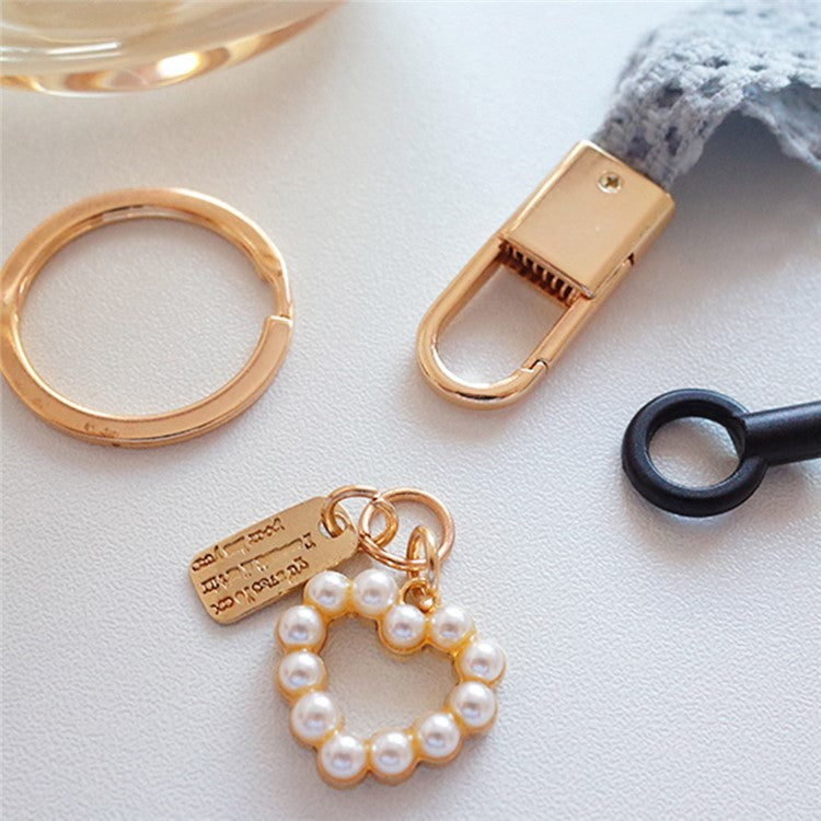 Phone Lanyard Neck Strap Lanyard Love-shape Pearl Pendant Cell Phone Strap - Navy Blue