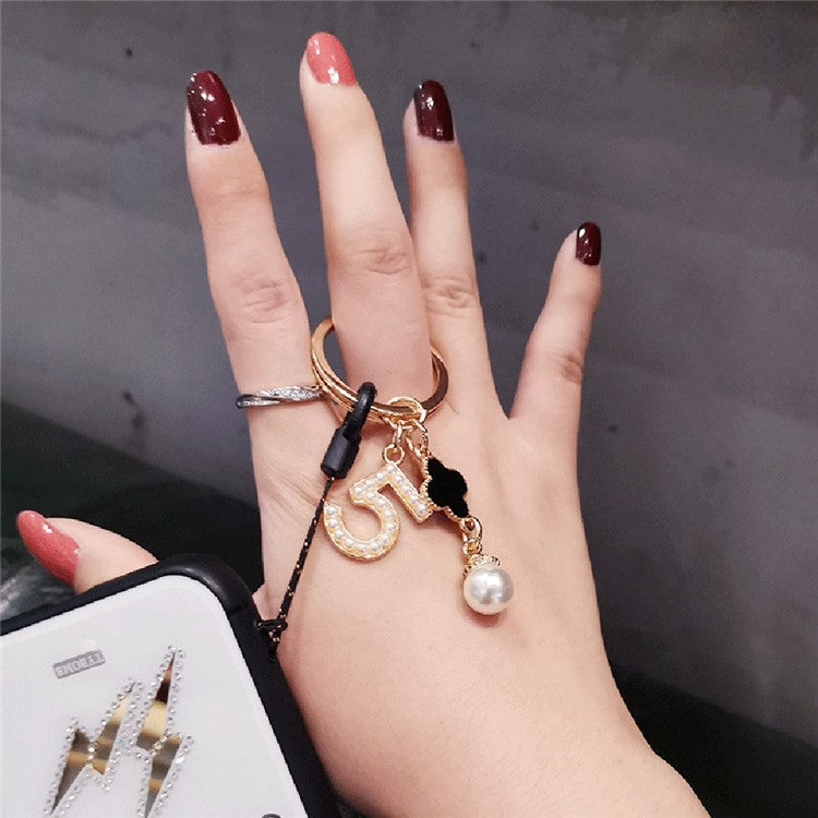 Phone Lanyard Phone Neck Strap Pearl Clover Pendant Braided Wool Cell Phone Cord - Light Yellow