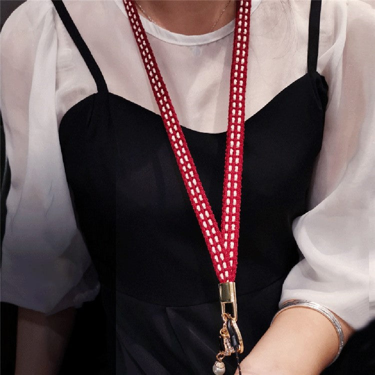 Phone Lanyard Phone Neck Strap Pearl Clover Pendant Braided Wool Cell Phone Cord - Red