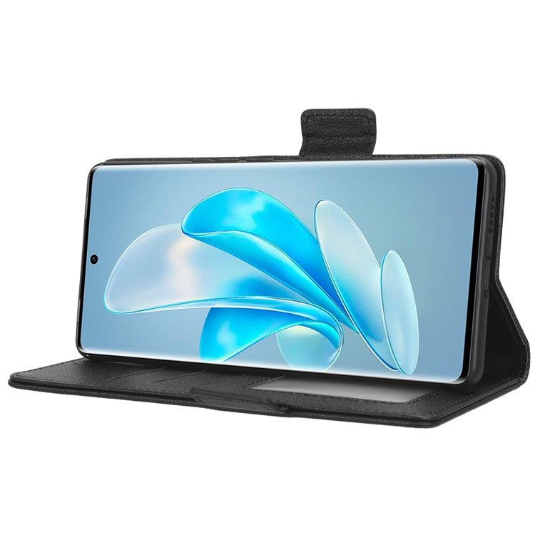 Phone Leather Case for vivo S17e 5G , Litchi Texture Wallet Stand Folio Flip Cell Phone Cover - Black