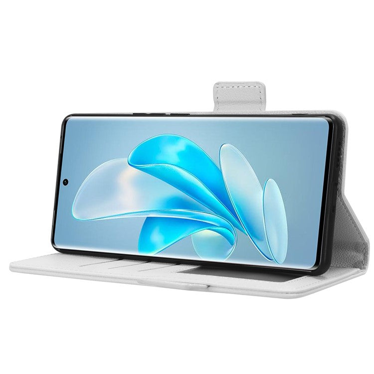 Phone Leather Case for vivo S17e 5G , Litchi Texture Wallet Stand Folio Flip Cell Phone Cover - White
