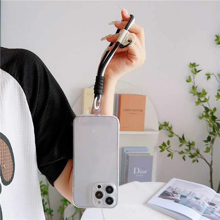 Phone Strap Dual-Layer Design 30cm Nylon Short Hand Lanyard with Tether Tab - Light Purple+Blackish Green