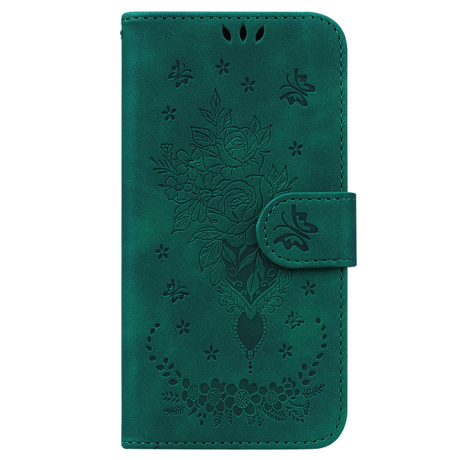 Phone Wallet Case for OnePlus 11 5G PU Leather Rose Butterfly Imprinted Stand Cell Phone Cover - Green