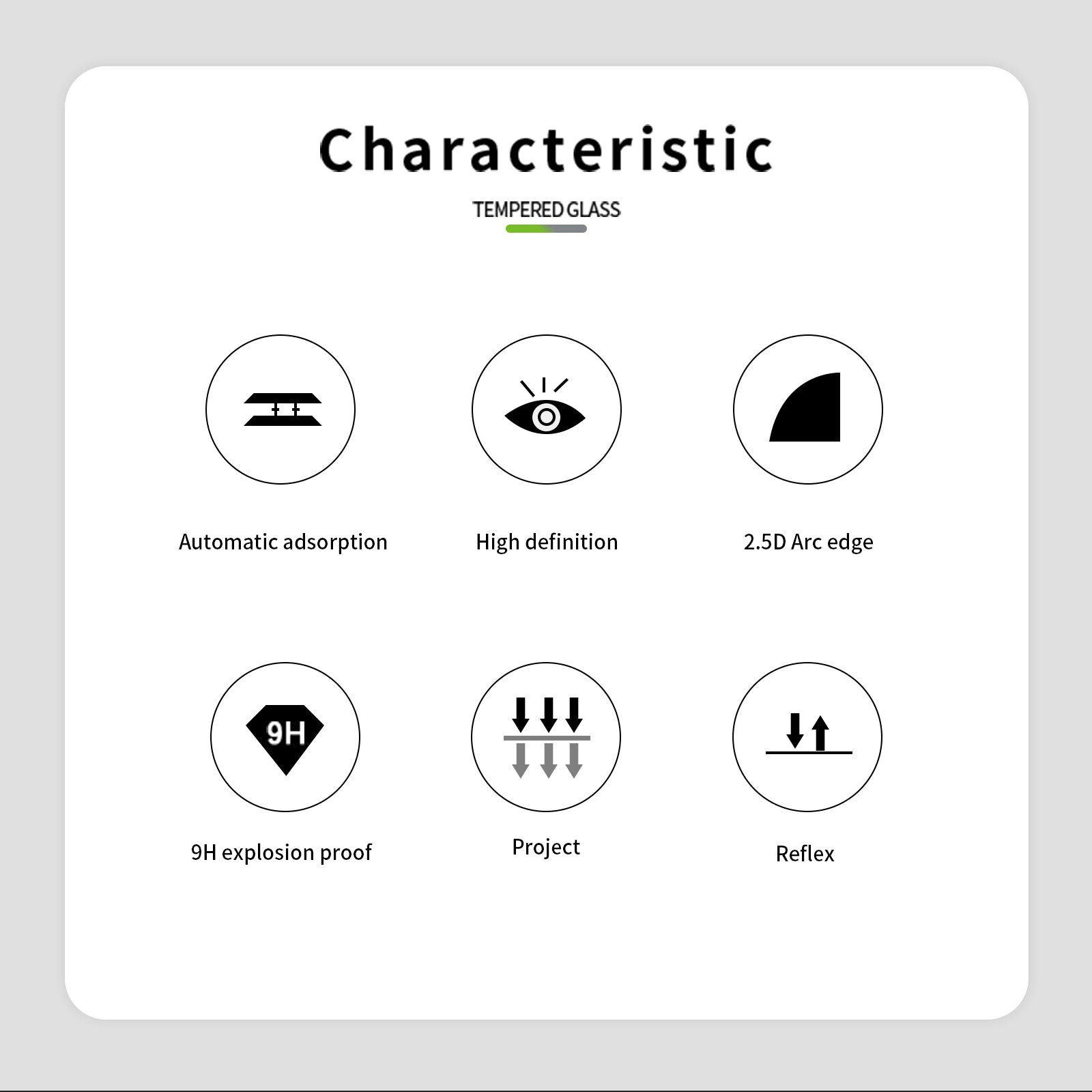 Using advanced materials, with high light transmittance, gives excellent HD screen display. The smooth oil coating surface, more effectively protects from fingerprints, oil and dirt. Super thin but 9H strong hardness, extremely anti-scratch. Secure anti-burst function, will not be broken into small pieces sharp. Easy to attach, no bubble and no adhesive residue.