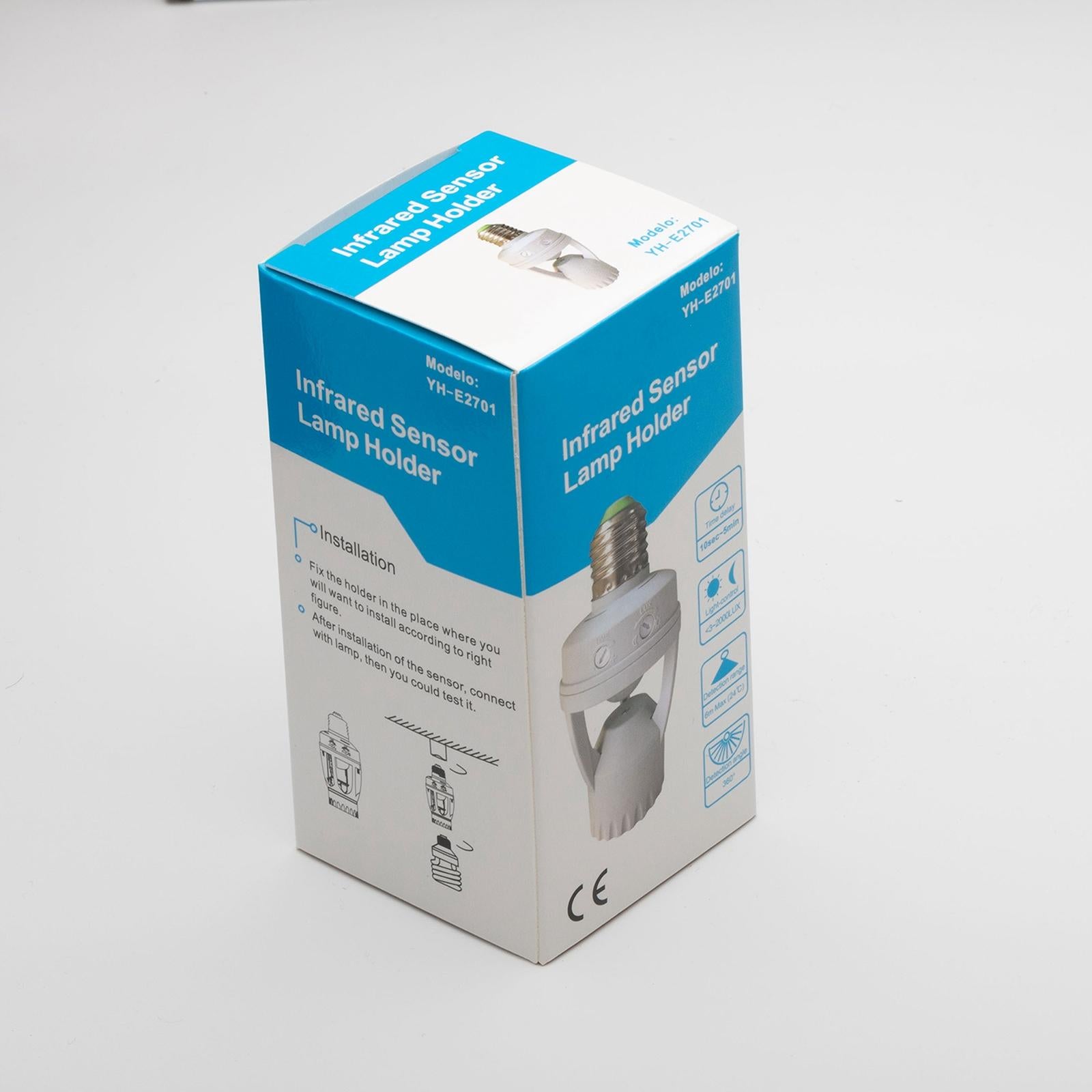 When the motion sensor light socket is connected to any E27 bulbs, it will turn on and delay off within the sensing range automatically by sensing the body temperature.