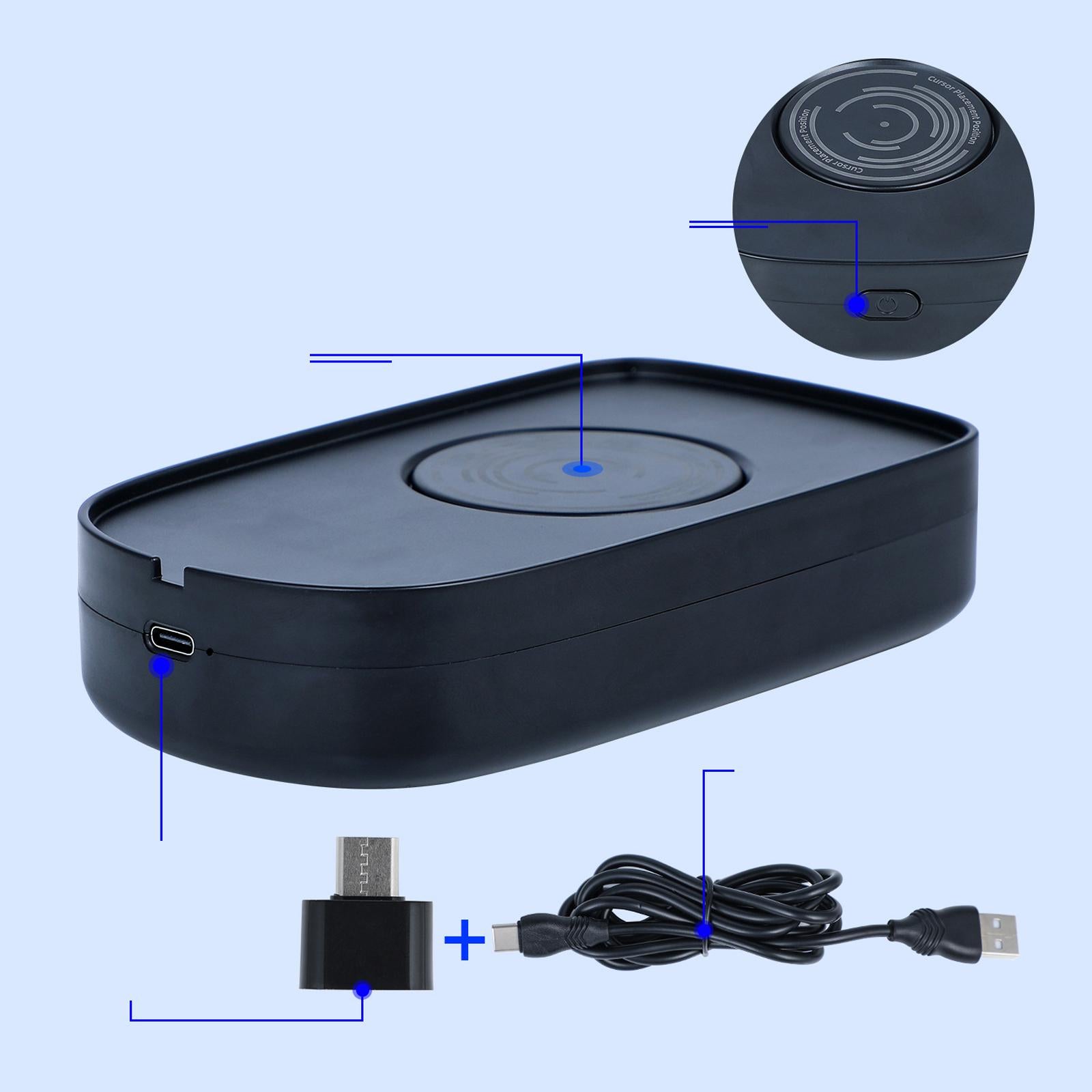 - The mouse wobble can be powered by an external adapter or by the USB C port of a PC, laptop, hub, docking station, etc.