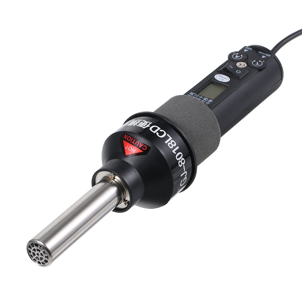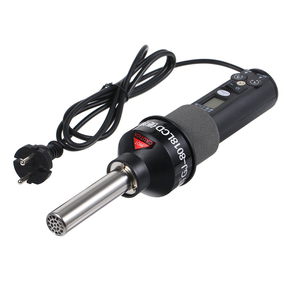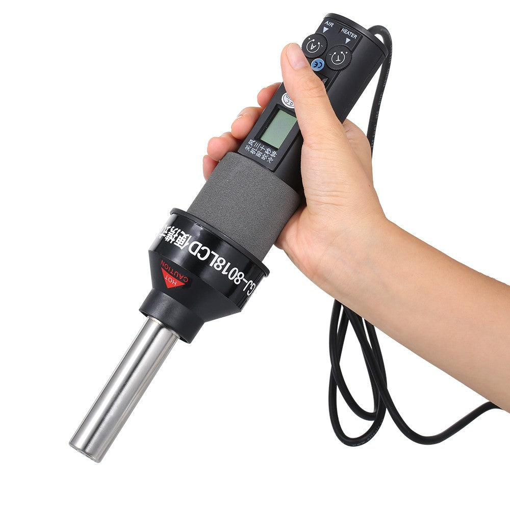 This product has a breakthrough in hor air gun technology it gives up traditional ways of supplying air by a diaphragm air pump and supplying power by transformer, it takes LCD digital display the hot air temperature, its design and quality are excellent.