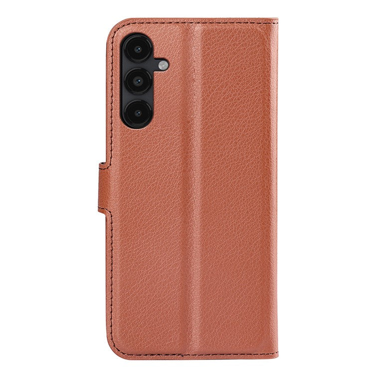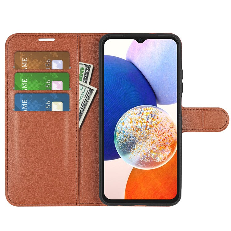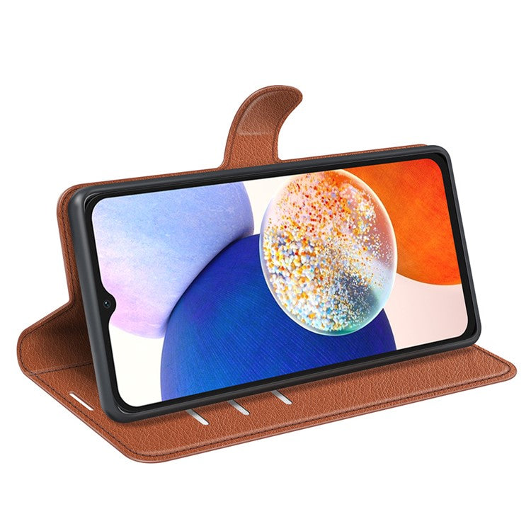 PU Leather Phone Shell for Samsung Galaxy M14 5G Litchi Texture Wallet Cover Stand Phone Case - Brown