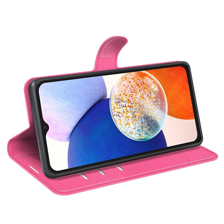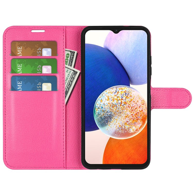 PU Leather Phone Shell for Samsung Galaxy M14 5G Litchi Texture Wallet Cover Stand Phone Case - Rose