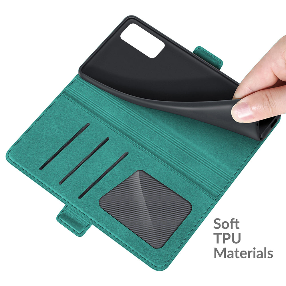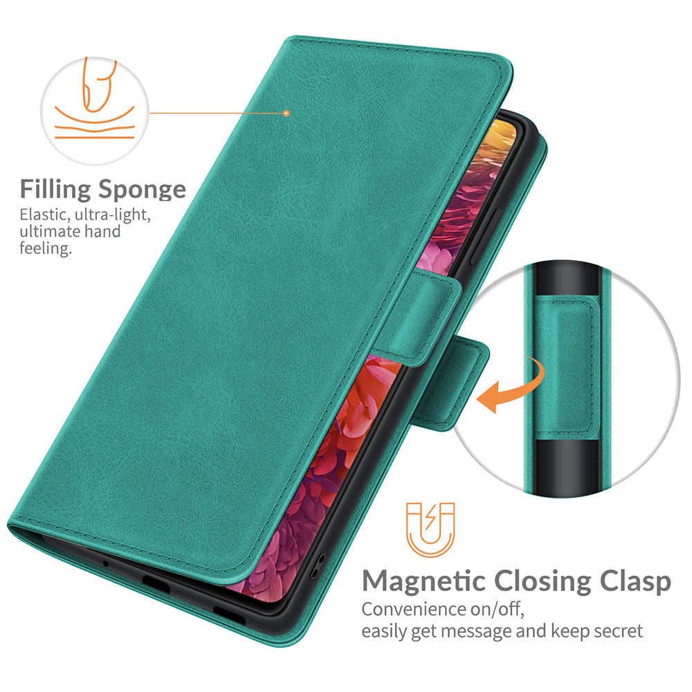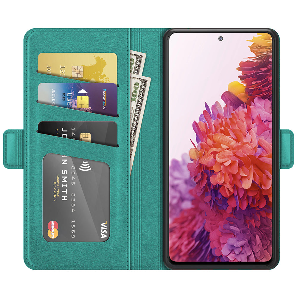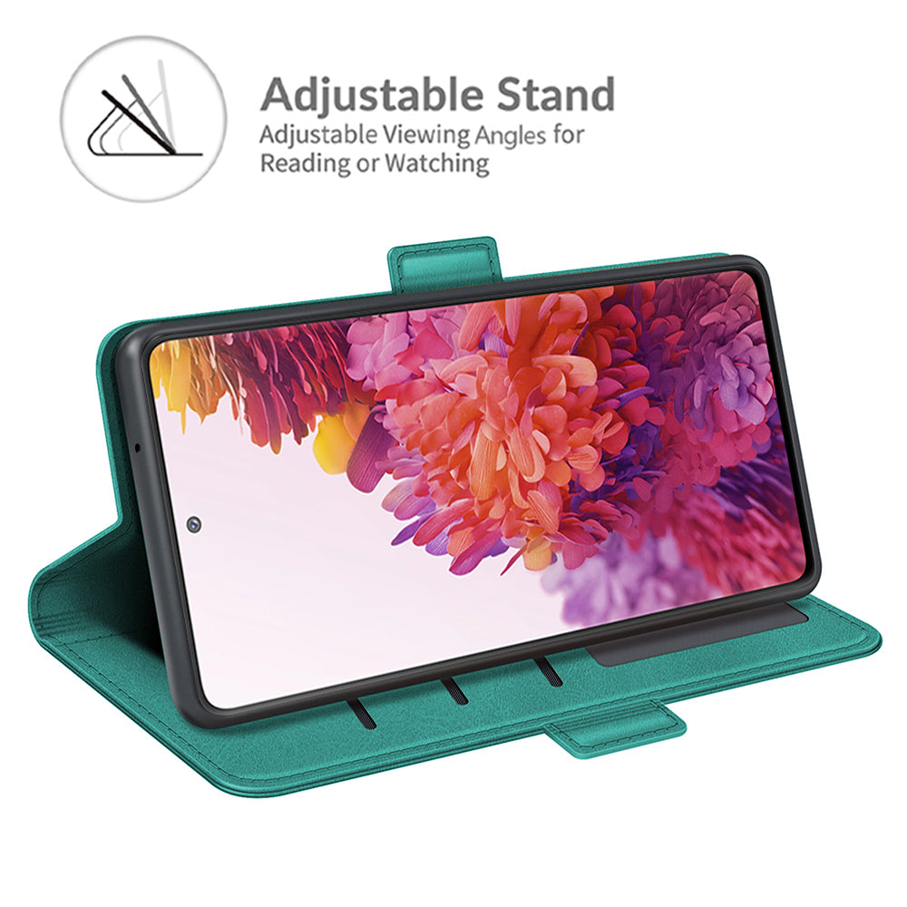 PU Leather Phone Wallet Stand Case Shell with Dual Magnetic Clasp Closure for Samsung Galaxy S20 FE 2022/S20 FE 4G/S20 FE 5G/S20 Lite - Cyan
