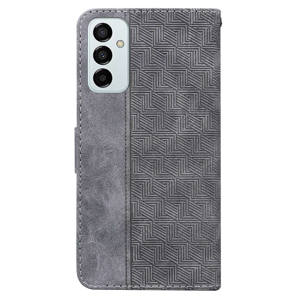 PU Leather Protective Shell for Samsung Galaxy M13 4G, Geometry Imprinted Shockproof Case Phone Stand Wallet Cover with Strap - Grey