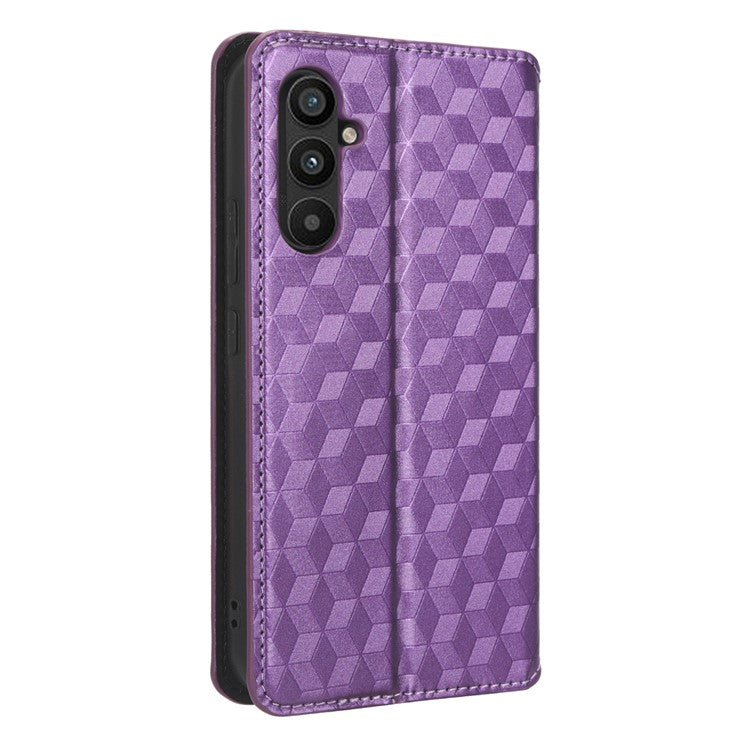 PU Leather Shell for Samsung Galaxy M54 5G / F54 5G Rhombus Imprinted Wallet Phone Case Flip Stand Cover - Purple