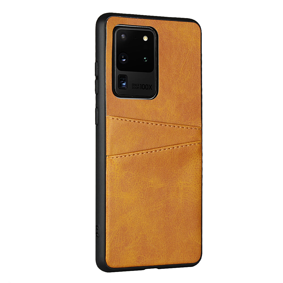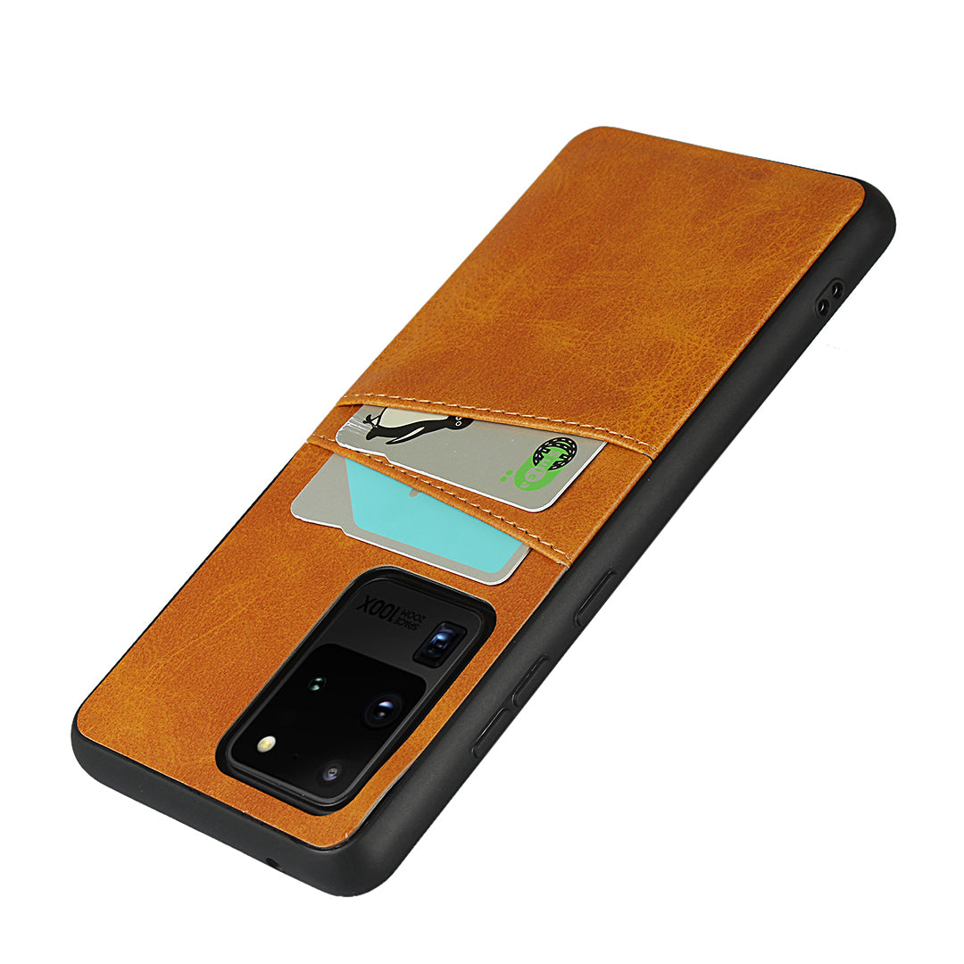 PU Leather+TPU Phone Case Dual Card Slots Cover for Samsung Galaxy S20 Ultra - Brown