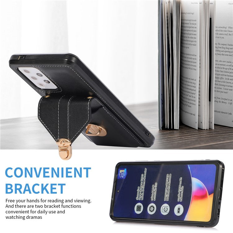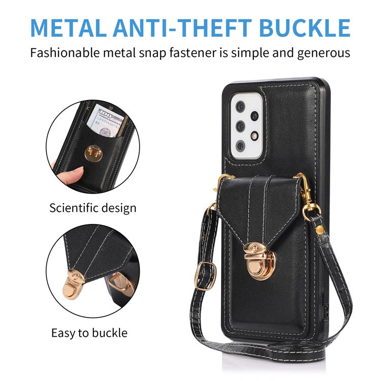 PU Leather+TPU Shell for Samsung Galaxy A72 4G / 5G Card Holder Back Case Phone Cover with Kickstand - Black