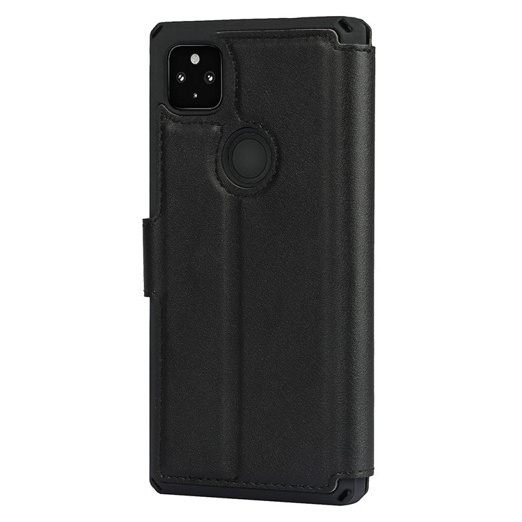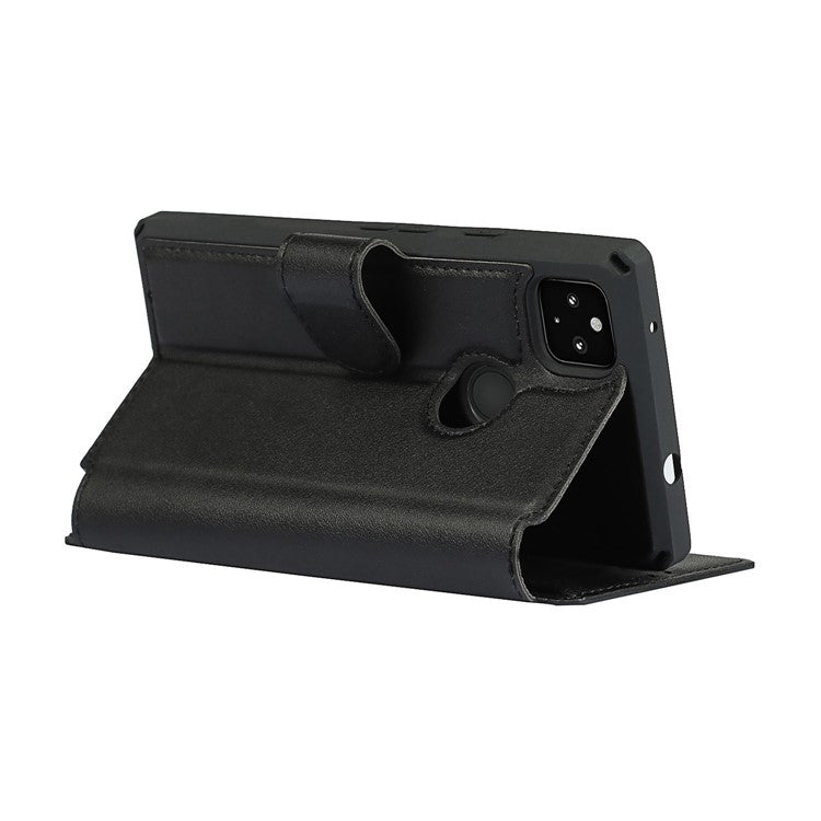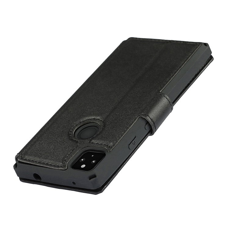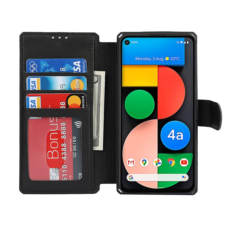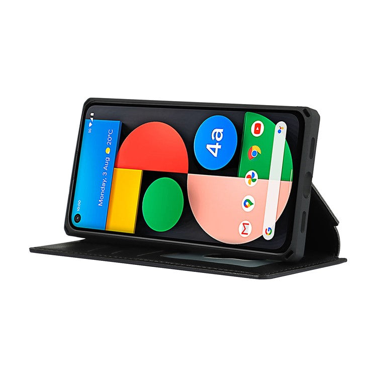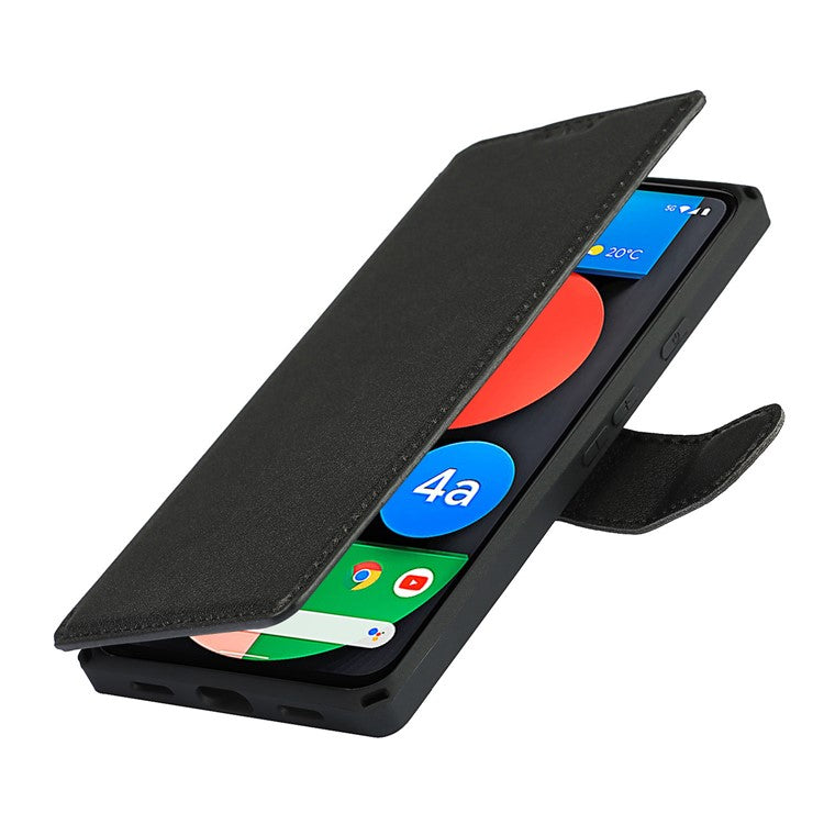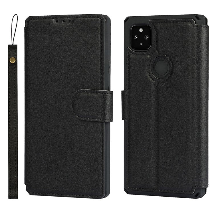 PU Leather Wallet Phone Cover with Wrist Strap for Google Pixel 4a - Black