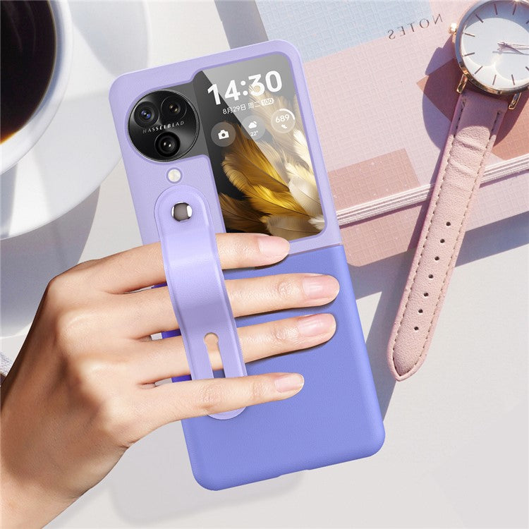 PU+PC Phone Case for Oppo Find N3 Flip 5G Dual Color Design Wristband Kickstand Phone Cover - Sky Blue+Light Purple