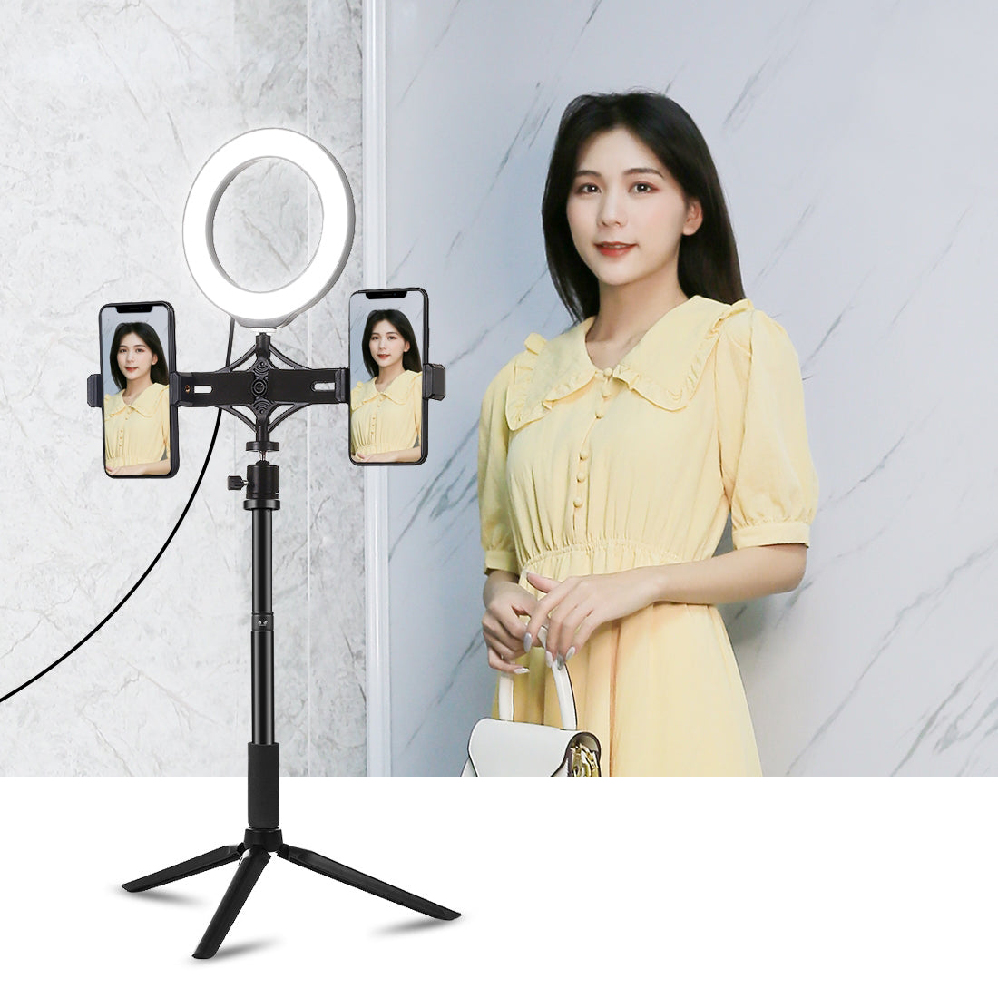 With 1/4 inch screw mount on the bottom: can be mount on a tripod or stand