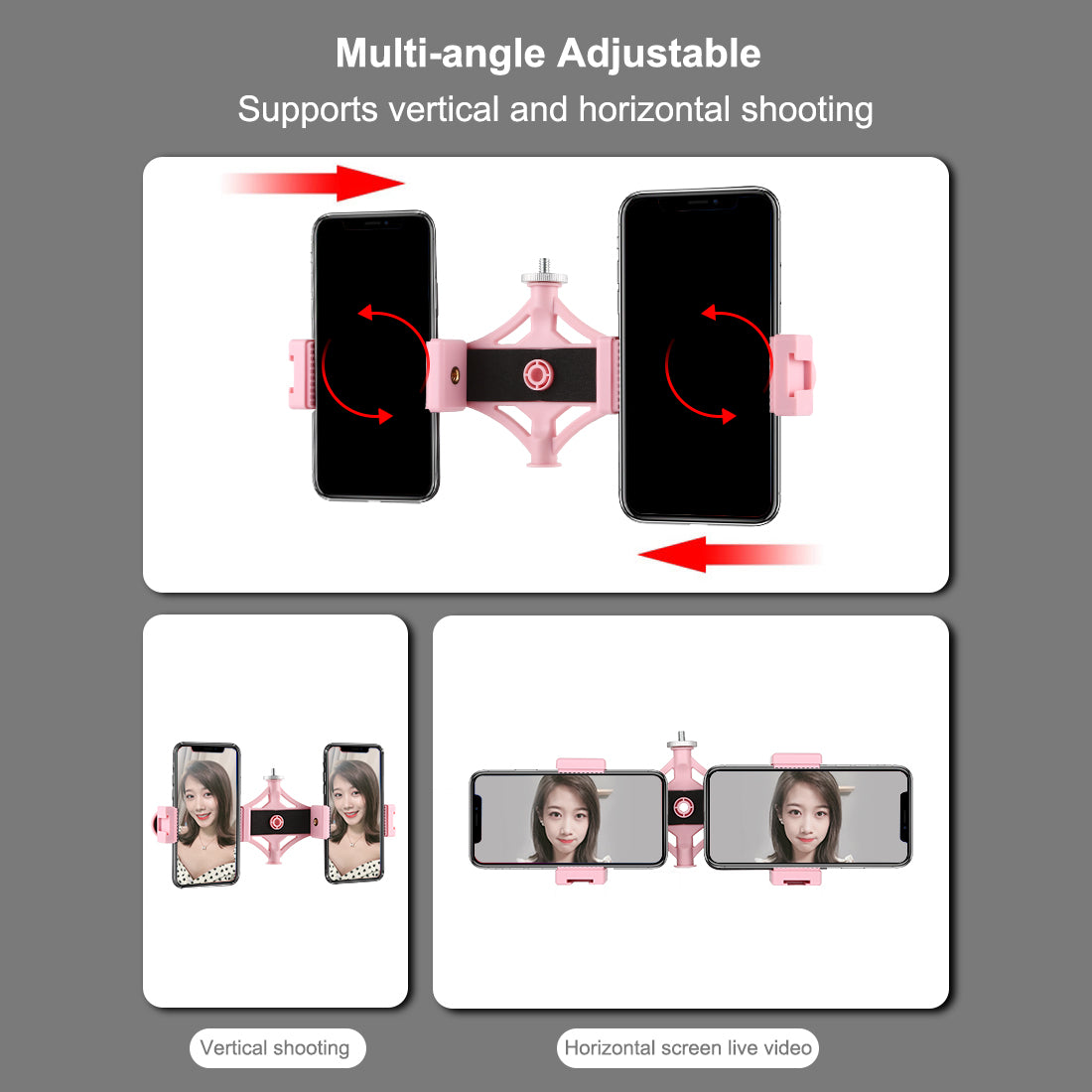 The phone holders are removable, and support horizontal and vertical usage