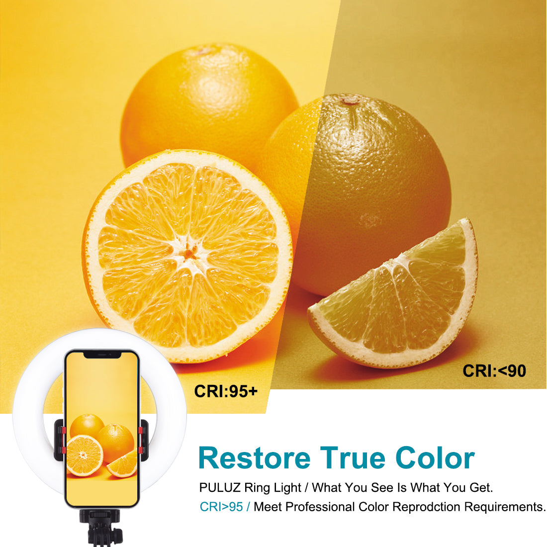 Puluz6.2 inch 16cm Ring LED Live Broadcast Vlogging Selfie Light + Bluetooth Selfie Stick Tripod Mount