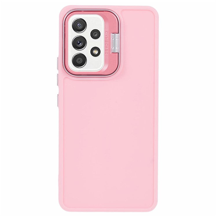 QH Series for Samsung Galaxy A53 5G Silicone Case Protective Phone Cover with Lens Kickstand - Pink