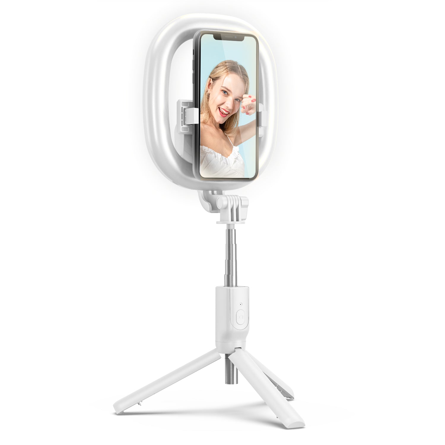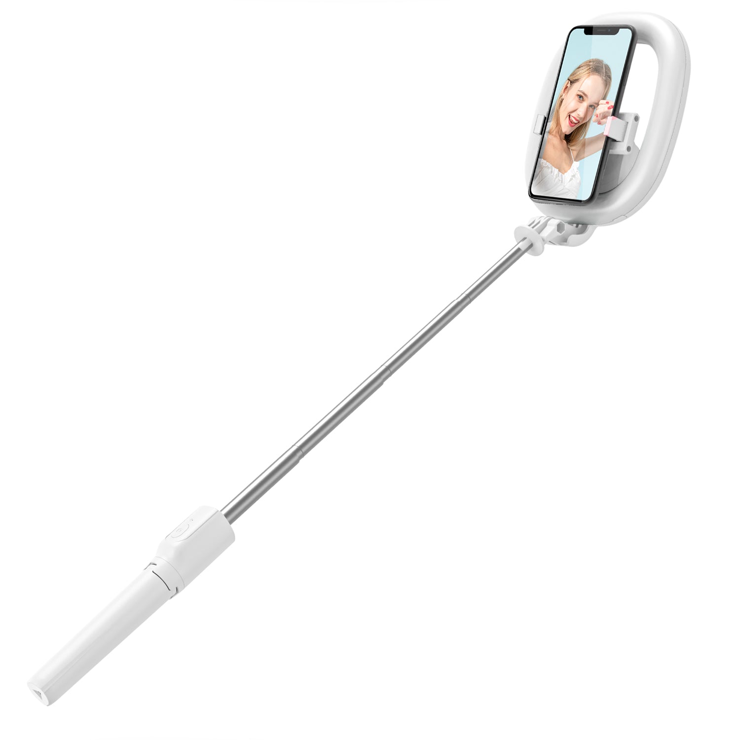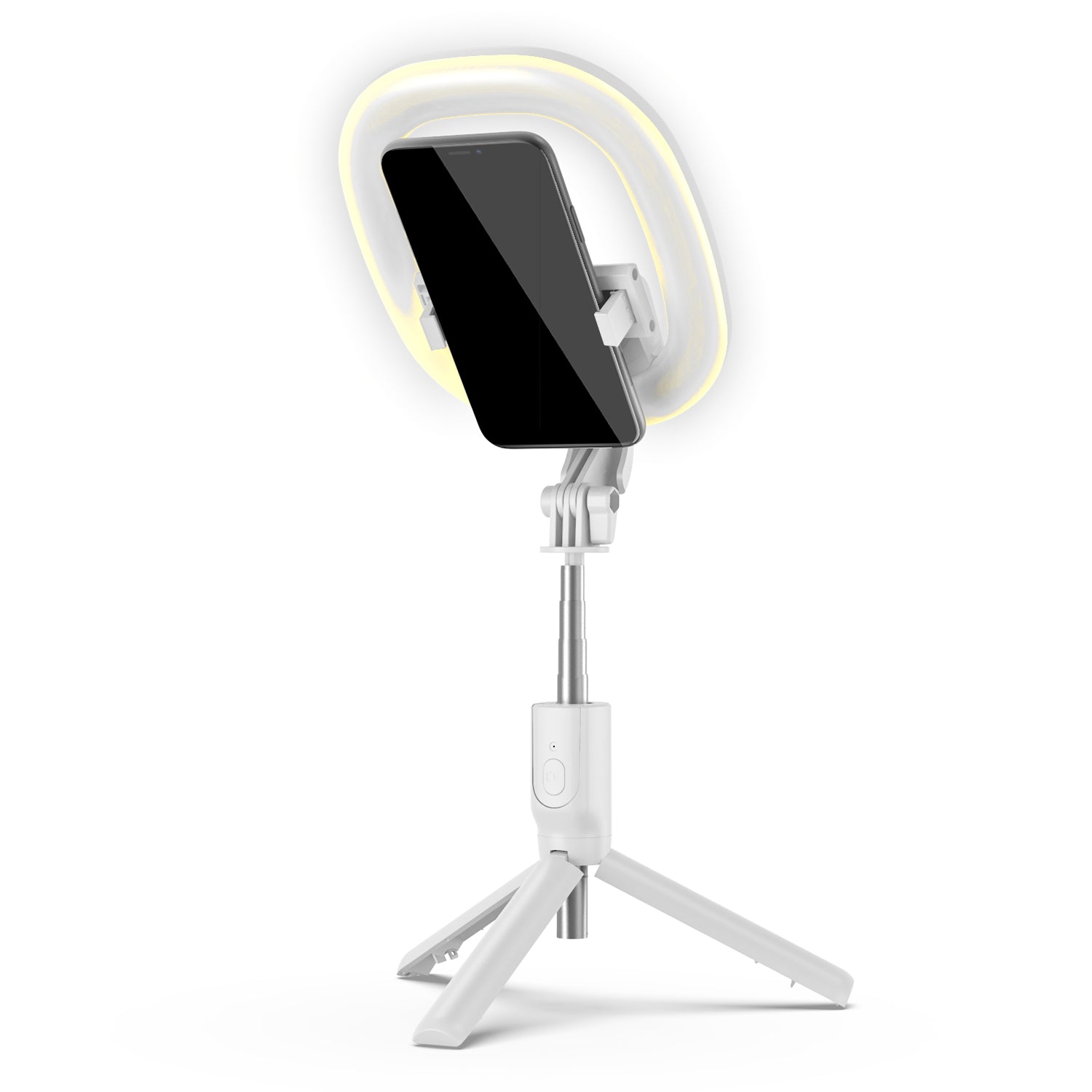 R10 Bluetooth Selfie Stick with Light Portable Adjustable Phone Tripod Stand for Live Streaming - White