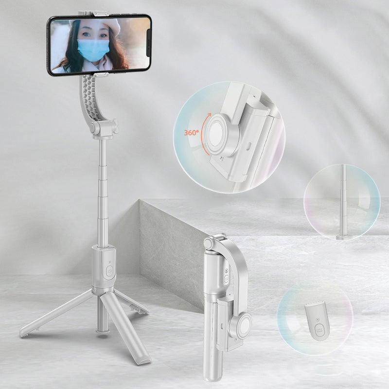 R15 Folding Anti-shake Mobile Phone Selfie Stick Stabilizer Adjustable Tripod Stand for iOS Android - White